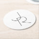 Posavasos Redondo De Papel Iniciales de superposición | Negro Sobre Blanco