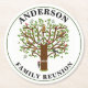 Pegatinas creativos de reunión, etiquetas partidarias o sellos para sobres con árboles familiares llenos de pájaros personalizados. Editar texto para añadir nombre y año.