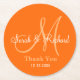 Posavasos Redondo De Papel La boda del monograma le agradece anaranjado