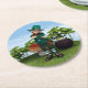 Representación digital en 3D de un leprechaun parado cerca de una olla de oro, un hongo y plantas de shamrock. Regalo perfecto para el día de San Patrón