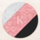 Posavasos Redondo De Papel Letra rosa rudimentaria y acuarela gris