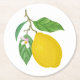 Posavasos Redondo De Papel Limón amarillo con hojas verdes y flores blancas