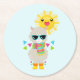 Posavasos Redondo De Papel Llama Guay y Sol sonriente Kawaii