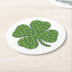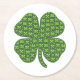 Numerosos tréboles pequeños decoran este gran trébol de cuatro hojas o una hoja de shamrock que está sentado sobre un fondo blanco.