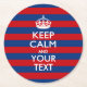 Posavasos Redondo De Papel MANTENER CALMA Y su texto en franjas azules