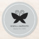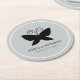 La montaña rusa de papel de la mariposa negra presenta una mariposa negra elegante con alas de expansión y un par de antenas curas, todo sobre un fondo gris pálido y dentro de un borde blanco redondo, con texto personalizado. © Morning 6