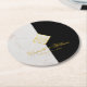 Posavasos Redondo De Papel Mármol Blanco Negro Monograma Oro Boda Elegante