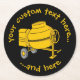 Mini mezclador de hormigón con ruedas. Icono de vector con colores de personalizable. Color de fondo personalizado. Texto personalizado.