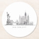 Posavasos Redondo De Papel Minimalist New York City Skyline Line Art