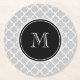 Posavasos Redondo De Papel Modelo gris de Quatrefoil, monograma negro