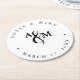 Posavasos Redondo De Papel Moderno Boda de Monograma Blanco y Negro