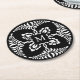 Posavasos Redondo De Papel Monograma de bodas de cosecha negra y blanca