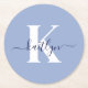 Posavasos Redondo De Papel Monograma de escritura azul moderno