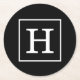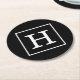 Posavasos Redondo De Papel Monograma inicial con marco blanco negro