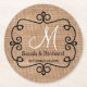 Posavasos Redondo De Papel Monograma rústico de la boda de la arpillera