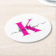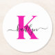 Posavasos Redondo De Papel Nombre inicial negro rosado caliente monogramado