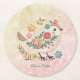 Posavasos Redondo De Papel Pájaro pequeño deja flores Papel rosa