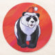 Posavasos Redondo De Papel Panda Con Navidades En Rojo