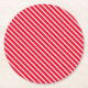 Posavasos Redondo De Papel Patrón oblicuo de franjas blancas rojas