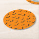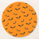 Posavasos Redondo De Papel Patrón volador de Naranja y murciélagos negros de