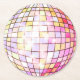 Un juego de gallos redondos con una bola de disco de tono rosa. Perfecto para una fiesta temática de los años 70 o para una discoteca soltera.