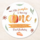 Posavasos Redondo De Papel Pequeña Calabaza Cae Primer Cumpleaños
