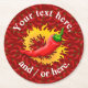 Pimienta picante roja con círculo de llama sobre pimientos rojos sin costura. Personalizar con tu propio texto.