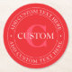 Posavasos Redondo De Papel Plantilla de texto circular elegante blanco rojo e