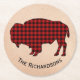 Los prácticos de costa temáticos del papel de tablero de la pulpa de la cabina rústica hechos en un papel del arte miran con los gráficos de una silueta roja y negra del búfalo de la tela escocesa. Personalice el texto arqueado negro para adaptarse a sus necesidades.