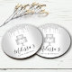 Relájate con tu bebida favorita y protege tus muebles con estos posavasos de papel personalizados simples, modernos, femeninos y elegantes. Una torta de 2 capas plateada y chic, tipografía de escritura elegante y gotas de brillo se superponen a un fondo de ombre plateado metálico falso. Personaliza con el nombre y mensaje de tu elección. Selecciona entre una variedad de formas, se venden en juegos de 6. Hace una declaración elegante y con estilo cada vez que los uses. Es un gran añadido para cumpleaños, despedidas de soltera, fiestas de soltera y otros eventos especiales.