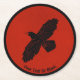 Una silueta simple y negra de un Raven (Corvus corax) sobre una imagen de fondo roja de cuero. La imagen del cuervo ha sido ligeramente "áspera" o "desgastada". Añade tu propio texto.