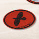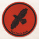Una silueta simple y negra de un Raven (Corvus corax) sobre una imagen de fondo roja de cuero. La imagen del cuervo ha sido ligeramente "áspera" o "desgastada". Añade tu propio texto.