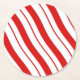 Sistema de 6 prácticos de costa disponibles del tablero redondo de la pulpa con una imagen de las rayas rojas y blancas de la hierbabuena. Vea el práctico de costa plástico cuadrado a juego. Vea la colección entera del práctico de costa del navidad en la sección de los DÍAS DE FIESTA.