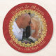 Prácticos de costa reales del banquete de boda del rojo y del oro a personalizar con su propia fotografía y texto. Los ricos texturizaron la mirada del fondo rojo con un marco y un texto adornados del oro que rodeaban su imagen.