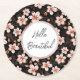 Posavasos Redondo De Papel Rosa Dorado Floral Personalizado Rubor Negro