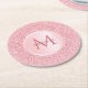 Posavasos Redondo De Papel Rosa Purpurina de oro Aspecto plantilla Girly eleg
