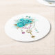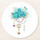 Posavasos Redondo De Papel Rosas turquesas con llaves