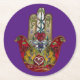 Posavasos Redondo De Papel Ruby Pomegranate Heart Red Bird Hamsa