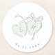 Posavasos Redondo De Papel Sage Hand Drawn Hearts Monogram Whimsical Wedding