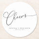 Posavasos Redondo De Papel Saludos Minimal Black Script Custom Wedding