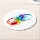 Posavasos Redondo De Papel Símbolo infinito con plumas arcoiris