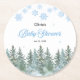 Posavasos Redondo De Papel Snowflakes Pine Trees Winter Baby Shower