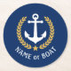 Posavasos Redondo De Papel Su nombre de barco Anchor Gold Laurel Star Blue