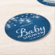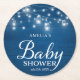 Este práctico de costa redondo rústico de Baby Shower ofrece luces en tarros de albañil y cadenas de luces con la palabra "Baby Shower" contra un fondo de madera azul del modelo. Compruebe hacia fuera hacer juego artículos como la invitación, los pegatinas y los sellos aquí https://www.zazzle.com/collections/rustic_wood_mason_jars_and_lights-119202204970019494?rf=238364477188679314
