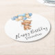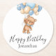 Posavasos Redondo De Papel Teddy Bear Blue Balloons Feliz cumpleaños