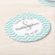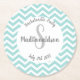 Posavasos Redondo De Papel turquesa y blanco chevron monograma fiesta