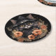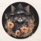 Posavasos Redondo De Papel Un gato negro lindo en el Gorra de una bruja