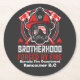 Posavasos Redondo De Papel Valiente encarnado en el equipo del bombero al ama