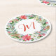 Posavasos Redondo De Papel Watercolor Poinsettia Navidades Wreath Monograma