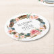Posavasos Redondo De Papel Wreath floral acuarela con plumas | BODA